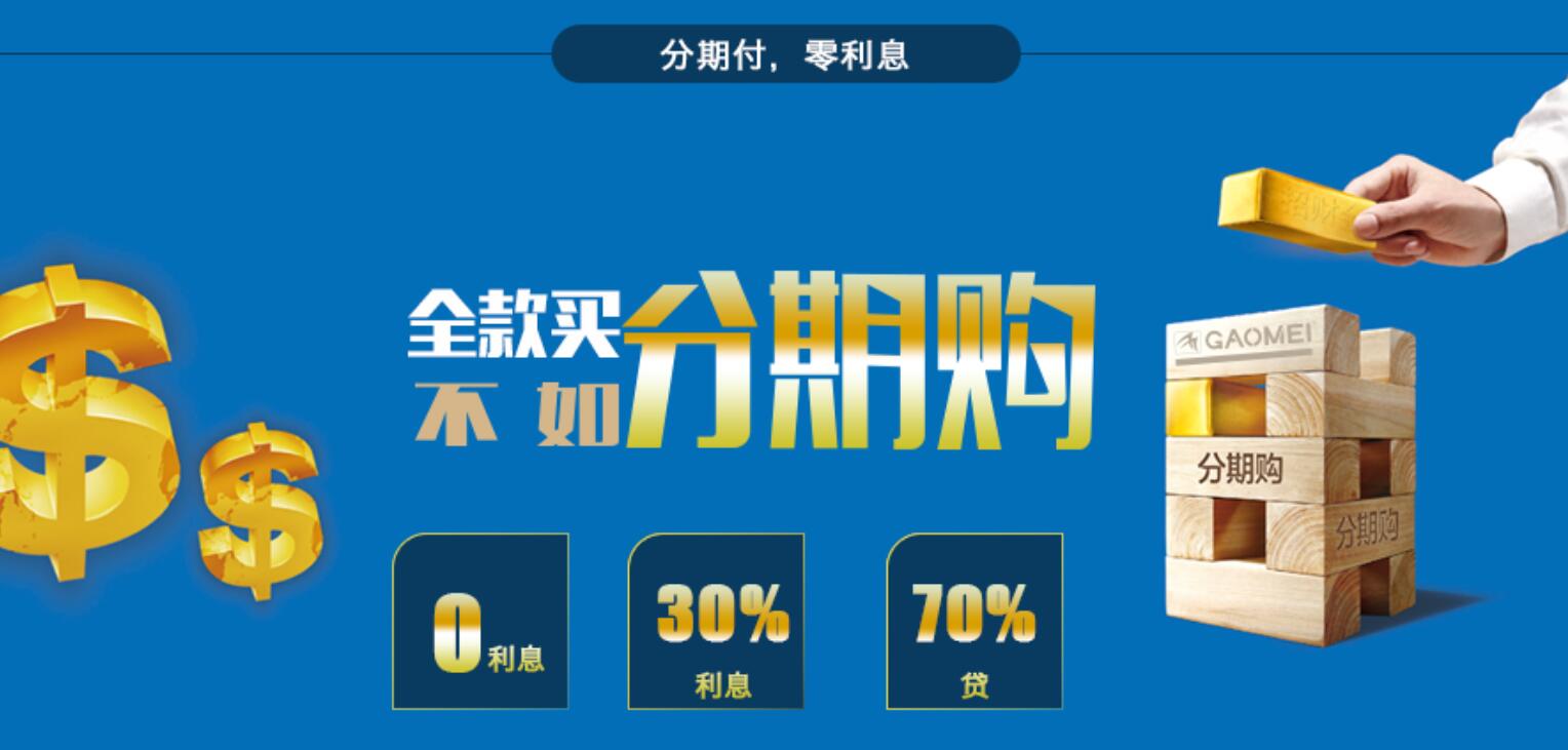 智慧政策,分期付款。整合厂商优势资源,行业首推分期付款政策,引领行业销售模式创新,高美智慧型清洁设备继续推行零利息分期付款政,力争为消费者提供更轻松、更便捷、更个性化的消费服务。