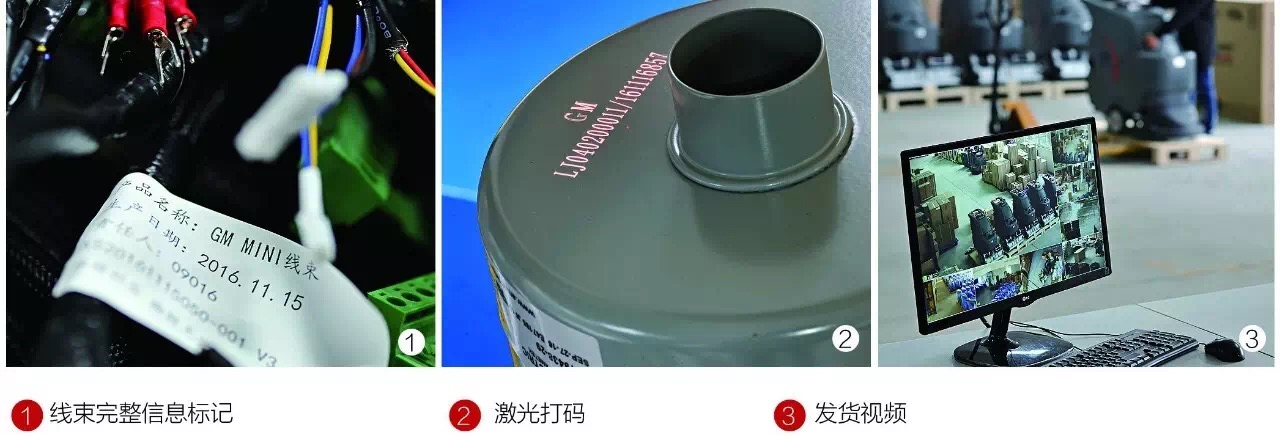 厂房面积15000㎡,员工202人的高美规格庞大,支撑起每月600-700台的洗地机仓储周转,且各项指标皆中国领先:从进货检验(IQC)到成品(FQC),实施全程品质管理监测,提前预警;关键零部件和整机激光打码,产品操作流程全程视频录像,结合流水线生产方式和ERP管理系统,从原材料进料到成品出库全程可追溯。实现管理可视化、标准化、流程化。